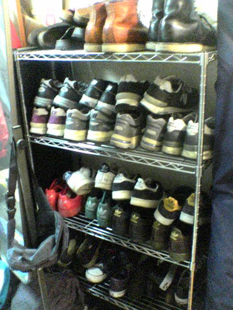 散乱する靴をなんとか整理。上から順に、玄関入ったとこ。その横。部屋の入り口横の靴箱の山。