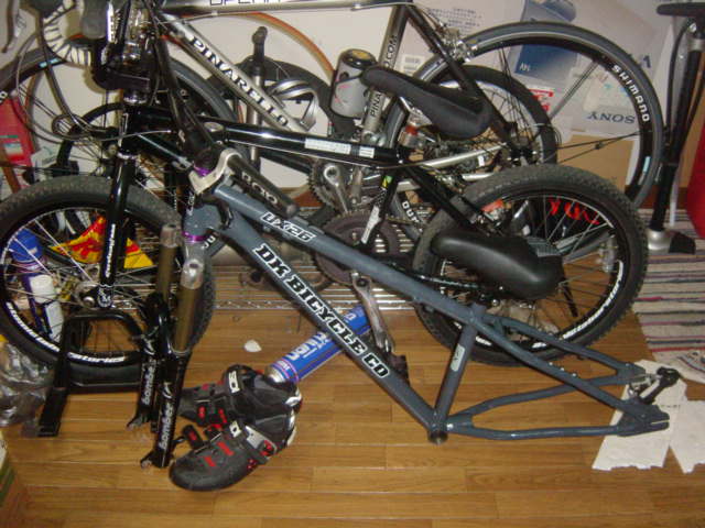 完成車であったヤツに乗った感じでは、ハンドル近いんだけど、自転車の下のほうに乗ってる感じがしてダートとかで空飛ぶ時は安定しそうです。自分で飛ぼうと思った時は…、ダルいんでしょうね。なんで、コンビニ&たまにダートトレイルという自転車の予定。鉄だから折れはしねーだろ。